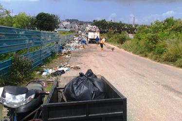 Dia dan 13 anggotanya setiap hari membantu mengumpulkan sampah dan mengangkutnya ke TPA menggunakan truk.