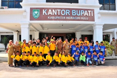 KABARRIAU.COM, Rengat - Dua Tim sepakbola pelajar U12 Kabupaten Indragiri Hulu (Inhu) ikut ambil bagian dalam ajang seleksi Tournament Sepakbola Danone Cup 2016 regional Sumatra yang digelar di Palembang, Sumatra Selatan, (10/3/2016). Keberangkatan tim dan official ini secara resmi dilepas oleh Plt Asisten Pemerintahan Umum Inhu Hendrizal di halaman kantor Bupati Inhu, Selasa (8/3/2016).