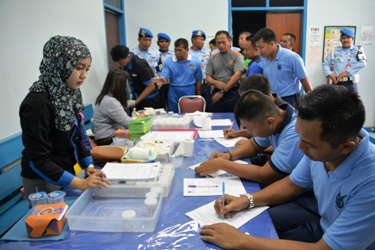 KABARRIAU.COM, Pekanbaru - Untuk mengantisipasi pengaruh serta pencegahan dini terhadap peredaran narkoba, Lanud Roesmin Nurjadin bekerja sama dengan Badan Narkotika Nasional (BNN) Provinsi Riau melaksanakan pemeriksaan urine terhadap personelnya yang dilaksanakan setelah apel pagi, Senin (22/3).