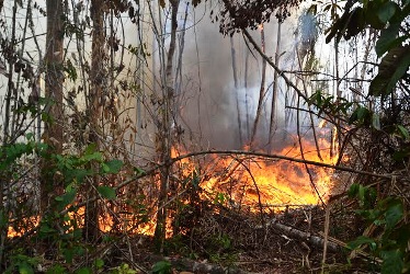 Berawal dari laporan itu, petugas langsung berusaha melacak lokasi kebakaran tersebut dan menemukan pelaku sedang membersihkan lahan dengan cara dibakar.