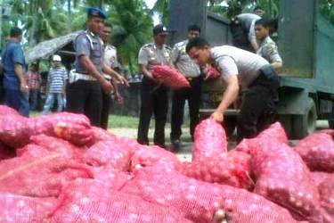 Di Dumai: Ratusan Karung Bawang Merah Selundupan Berhasil Digagalkan Aparat
