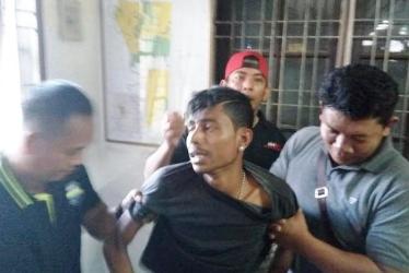 "Aku enggak salah pak. Enggak ikut-ikut aku," kilahnya. Karena terus meronta, Putra dibawa ke dalam Kantor Lurah Polonia. Di halaman kantor lurah, Putra digeledah.