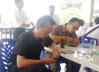 KABARRIAU.COM, MEDAN - Ramadhan Pohan dan Savita Linda Hora Panjaitan, setibanya di Kejaksaan Tinggi Sumatera Utara (Kejati Sumut), langsung bersantap siang di kantin belakang gedung Korps Adhyaksa tersebut, Rabu (7/12/2016).
