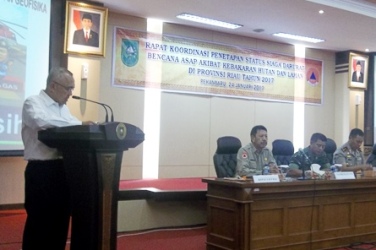 "Status siaga darurat ini ditetapkan agar bisa melaksanakan pencegahan kebakaran hutan dan lahan sedini mungkin" kata Gubernur Riau Arsyadjuliandi Rachman dalam Rapat Koordinasi Penetapan Status Siaga Darurat Karhutla 2017 di Kantor Gubernur Pekanbaru, Selasa (24/1/2017).