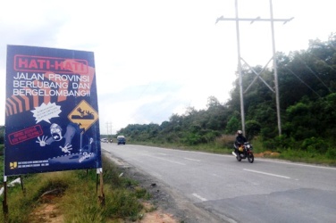 Dua spanduk besar dipasang lengkap dengan karikatur pengendara jatuh atau kecelakaan tersebut tertanda dari Unit Reaksi Cepat Bidang Bina Marga (UAC-BM) Dinas Pekerjaan Umum Tarikim Kabupaten Siak dan sejumlah peringatan lainnya dipasang dari dan menuju kabupaten Siak menuju Kota Pekanbaru ini sengaja diletakkan di beberapa titik yang jalannya bergelombang dan rusak parah.