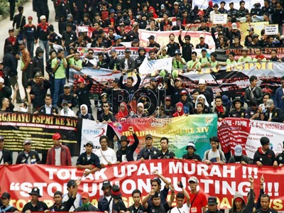 Salah satu poin yang menjadi tuntutan peserta adalah pemberian upah layak. Berdasarkan pantauan dilapangan, Senin (1/5/2017) pukul 12.00 WIB, aparat kepolisian telah memasang pagar pembatas di Jalan Medan Merdeka Barat, sehingga peserta aksi tertahan di sekitar Kantor Kementerian Pariwisata dan Patung Arjuna Wiwaha.