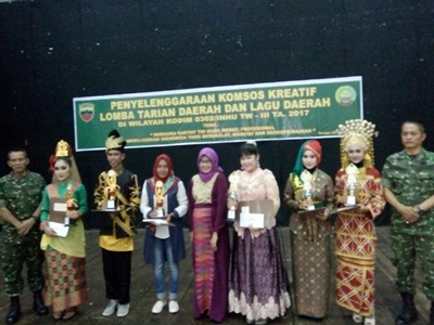 Sedangkan lomba lagu daerah yang diperlombakan sebagai juara pertama diraih SMPN 1 Rengat, wilayah binaan Koramil/01 Rengat dan juara kedua dari SMUN 1 Kuantan Hilir, wilayah binaan Koramil 07/Kuantan Hilir dan juara ketiga diraih SMUN 1 Kuantan Mudik.