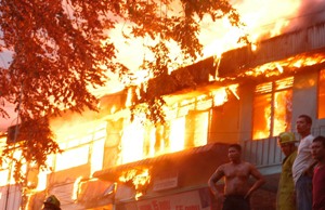 Air Molek - Sebanyak Empat Puluh Sembilan petak ruko Di Pasar Lama Air Molek, Kabupaten Indragiri Hulu (INHU), Riau, hangus dilalap si jago merah, api berasal dari sebuah Ruko Rivaxel, tepatnya di tengah leretan panjang ruko tersebut.