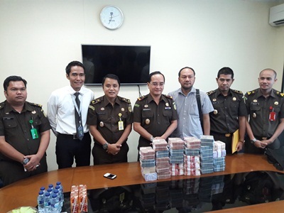 "Uang diantar langsung pihak keluarga ke kejari Senin lalu," kata Kepala Kejari Rohil Bima Suprayoga SH MHum di dampingi Kasi Intel Odit Megonondo SH, Kasi Pidsus Mochtar Arifin SH, Kasi Datun Adreas Tarigan SH, Kasi Pidum Sobrani Binzar SH dan Kacab BRI Bagansiapiapi Awang S Wijaya dikantor BRI,Jalan merdeka usai menitipkan uang pengembalian ke Bank BRI,Rabu (29/11/17).