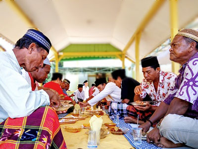 Okeline, Tanjung Pinang - Tahlil Jamak atau Kenduri Ruah berisikan dzikir dan doa kepada Allah SWT rutin dilakukan setiap menyambut bulan suci Ramadhan adalah tradisi turun temurun masyarakat Pulau Penyengat, Kepulauan Riau (Kepri).