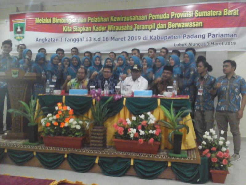 membuka pelatihan kewira usahaan pemuda melalui bimbingan kita siapkan kader kewira usahaan yang trampil dan berwawasan acara tersebut dihadiri oleh Suhadtri Bur wakil bupati Padang Pariaman dengan jumlah peserta sebanyak 40 orang lebih kurang sekabupaten Padang Pariaman, Sumbar.