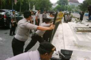 Polisi yang ada di lokasi, hanya terdiam melihat aksi mahasiswa tersebut. Namun usai mahaiswa merubuhkan pagar countdown, lantas pihak kepolisian mencoba untuk mengembalikan pagar yang telah rubuh itu ke tempat semula. Kendati pagar tidak bisa terpasang lagi, namun pagar besi bercat hitam itu tetap dikembalikan ke tempat semula.**rk