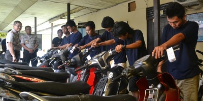 “Saya belajar dari BD, yang pelaku curanmor juga,” kata Sutarlindo saat memeragakan keahliannya di depan Kapolres pada sebuah motor yang dicurinya.