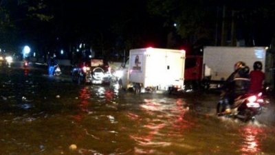 Curah hujan tinggi secara terus menerus di Kota Manado membuat beberapa lokasi digenangi air hingga setinggi lutut orang dewasa. Kondisi ini membuat aktivitas warga menjadi terhambat.