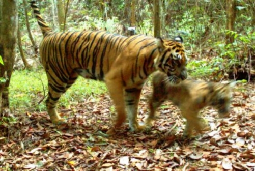 "Petugas itu menemukan jejak kaki harimau dewasa dan anak harimau, terus ada pengakuan warga pernah melihat harimau itu sore hari," imbuhnya.