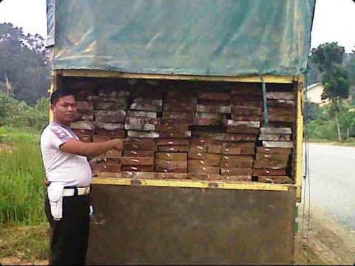 Polisi pada hari minggu tgl 02 feb 2014 sekira jam 21.30 wib, pada saat anggota Polsek Pangkalan Lesung yang sedang melaksanakan razia didepan kantor Polsek tersebut telah berhasil mengamankan 1 unit Colt Diesel warna Kuning dengan No.Pol BM 9411 FN, STNK An.Heriyanto Hiras Nababan.Alamat dusun Sido Dadi Rt 011 Rw 003 Kelurahan.Suka Mulya Bangkinang Seberang Kabupaten.Kampar, Riau. Truk ini terdaftar adalah sebagai TNI, truk ini ditangkap karna membawa muatanan Hasil hutan berupa Kayu hasil senso, sekitar 8 M3. Sementara saat diperiksa sopir truk ini melarikan diri, sehingga polisi hanya bisa mengamankan Barang Bukti saja.