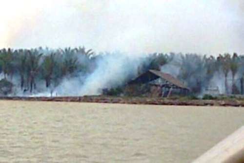Dari pantauan, Selasa (4/3) tadi pagi, ketika sejumlah awak media melintasi perairan tersebut, terlihat kobaran si jago merah sedang melalap perkebunan sagu diwilayah Tebing Tinggi Timur itu. Disekitar lokasi itu juga terlihat tiga orang dengan mengugunakan pompong kecil sedang berupaya memadamkan api.