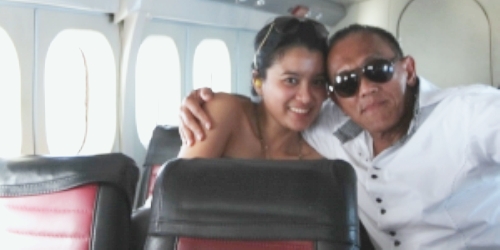 Foto ini berlatar belakang apakah sebuah pesawat terbang ataupun sebuah kendaraan laut jenis speed dengan jejeran tempat duduk yang banyak karena berbeda dengan pesawat yang ada dalam video plesiran, yang diduga merupakan jet pribadi.