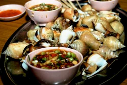 Gonggong banyak ditemui di perairan Batam dan Tanjung Pinang Kepulauan Riau. Rasanya mirip campuran cumi, kerang dan udang. Teksturnya kenyal mirip cumi. Hanya direbus dengan sedikit bumbu, lalu dicocol sambal pedas. sedaaapnian. Harga seporsinya 40 ribu rupiah sebanding dengan kelezatannya. Makannya pakai tusuk gigi.