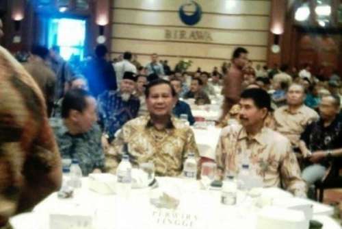 Prabowo Subianto datang Kamis (27/3) pukul 12.00 WIB, mengenakan batik cokelat. Ketika hadir Prabowo langsung bersikap sempurna dengan badan yang tegap, dia memberi hormat kepada para purnawirawan perwira tinggi TNI.