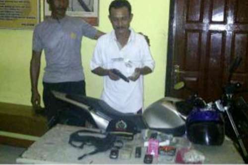 "Bahkan saat dilakukan penggeledahan dirumahnya di Desa Muara Mahat Kecamatan Tapung Kabupaten Kampar ditemukan 1 pucuk senjata api jenis air soft gun, 2 unit magazine,3 Kotak Gotri,1 Unit Spm Yamaha Vixon W. Hitam serta Identitas Kartu BIN. Pelaku ternyata juga residivis Perkara Pencurian dan pernah dipenjara di LP Pekanbaru," Ujar Kapolsek Tapung Kompol Jufrizal melalui Paur Humas Polres Kampar Ipda Deni Yusra kepada wartawan, Jumat (25/4/14) Kemaren.