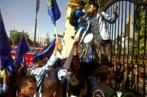 Mahasiswa berusaha pendobrakan gerbang kantor gubernur. Namun dapat diantisipasi sekitar 50 Polisi Pamong Praja (Pol PP) Provinsi, yang diterjunkan langsung mengamankan unjuk rasa serta sejumlah anggota kepolisian.