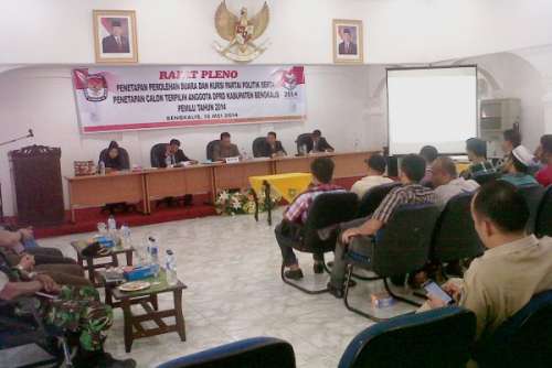 Kabar Politik - Komisi Pemilihan Umum (KPU) Kabupaten Bengkalis menggelar rapat pleno penetapan perolehan suara dan kursi partai politik serta menetapan anggota DPRD Kabupaten Bengkalis periode 2014-2019 hasil pemilu 9 April 2014, di Gedung Laksamana Jalan Jendral Sudirman, Selasa (13/5).