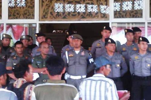 Demonstrasi berjalan lancar dengan pengawalan puluhan personil dari Polres Pelalawan dan Satuan Polisi Pamong Praja (Satpol PP).