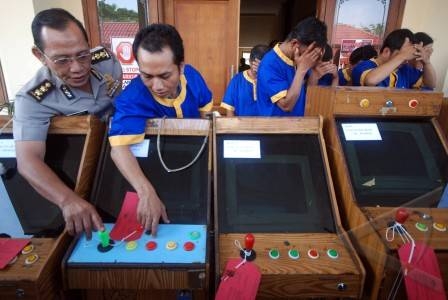 Dari penggerebekan itu, pihak kepolisian mengamankan 45 unit mesin jackpot, satu karung koin jackpot bernilai 20 ribu per koin, satu senapan angin, satu bilah pisau, tiga unit sepeda motor, dan lima unit telepon genggam.