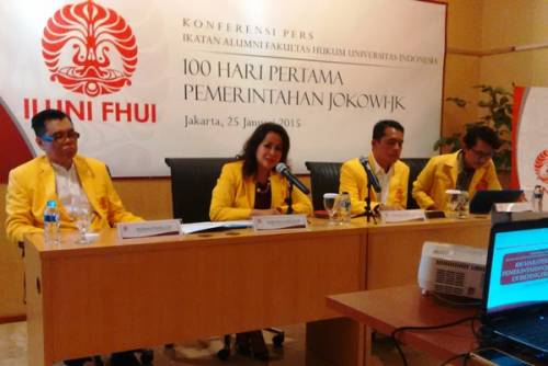 Mengenakan jas almamater kuning UI, mereka berunjuk rasa membela KPK yang sedang dirundung masalah. Satu per satu pimpinan KPK dilaporkan ke polisi, bahkan Bambang Widjojanto sudah ditetapkan sebagai tersangka.