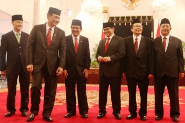 Enam menteri baru yang dilantik itu adalah Darmin Nasution sebagai Menko Perekonomian, Rizal Ramly sebagai Menko Maritim, Luhut Binsar Panjaitan yang akan merangkap jabatan sebagai Menkopolhukam dan Kepala Kantor Staf Presiden.