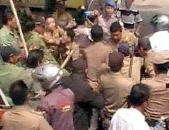 Anggota Satpol PP yang tak terima dilempari batang bambu dan batu, balas mengejar pedagang dan mahasiswa. Lima mahasiswa yang diduga menjadi provokator diamankan petugas polisi.***/mtc/net