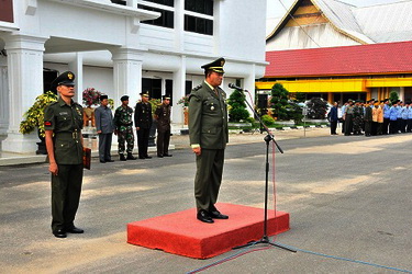 KABARRIAU.COM, Rengat - Kepala Staf Kodim (Kasdim) 0302 Indragiri Hulu (Inhu) Mayor Kav. Sukri Hendri, S.Kom bertindak selaku Inspektur Upacara dalam pelaksanaan Upacara Peringatan Hari Pahlawan yang digelar di halaman Kantor Bupati Inhu, Selasa (10/11/2015).