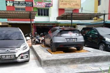 Di dekat taman itu berdiri sebuah car wash atau cucian kendaraan dengan bangunan permanen.