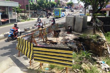 "Saat ini sedang dilakukan pemasangan Box Culver di ruas jalan tersebut,yang saat ini kondisinya amblas dan longsor.Akibat dari pemasangan Box Culver yang dilakukan oleh pengembang tersebut,maka jalan di lokasi sekitar pengerjaan ditutup dan saat ini U-turn yang ada sekitar 50 meter,sebelum dan sesudah pengerjaan dibuka untuk melakukan Contra Flow ( melawan arus ) guna menghindari lokasi di sekitar penutupan jalan,"ujar AKP Sunarti.