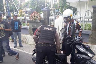"Selamat siang pak. Mau kemana kita. Boleh kami periksa sebentar," kata petugas sabhara yang berjaga di simpang Jl Kartini, Kamis (4/2/2016) siang. Salah seorang kader Ikatan Pemuda Karya (IPK) yang mengendarai sepeda motor Vario 150 tampak berhenti.
