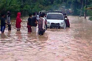 "Nggak bisa lewat ni. Banjir di Pangkalan," kata Said Suwarno, Senin (8/2/2016).
