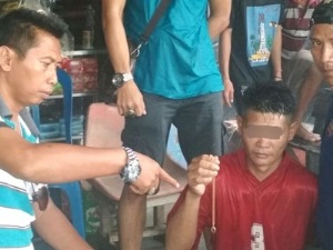 Okeline, Inhil - Anggota Polsek Mandah menangkap seorang petani yang menjadi pelaku begal, di -