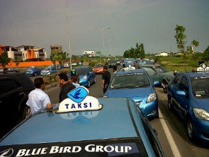 Ratusan taksi Blue Bird Juanda menggelar aksi solidaritas. 300 Sopir tersebut memprotes -