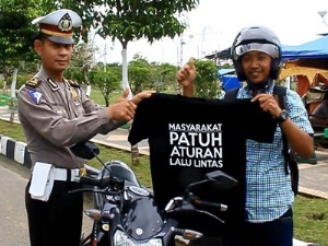 Usai Tilang Kenderaan, Petugas Beri Baju Kaos Gratis