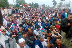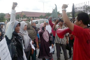 Puluhan aktivis GESER mendesak Gubernur Riau, Rusli Zainal untuk mengabulkan tuntutan warga Pulau -