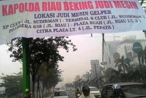 Spanduk Judi di Jembatan Penyeberangan Pekanbaru