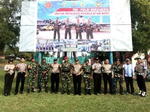 Okeline, Dabo Singkep - Pemasangan spanduk 'Menjalin Sinergitas TNI - Polri' dilakukan -