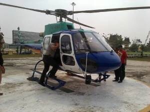 Saat akan dilakukan peninjauan Kebakaran Hutan dan Lahan di Pelalawan, Riau, Salah seorang Humas -