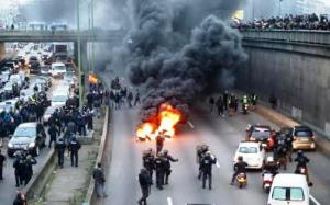 Massa Bakar Ban Sebelum Demo Anarkis Sopir Taksi VS Driver Ojek Online