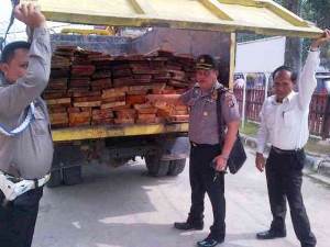 Polsek Pangkalan Kerinci, Kabupaten Pelalawan, Riau, Kembali mengamankan kayu olahan yag diangkut -