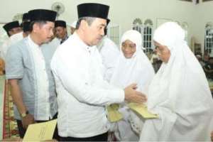 300 kaum dhuafa di Kecamatan Mandau mendapat santunan dari Bupati Bengkalis, H Herliyan Saleh saat -