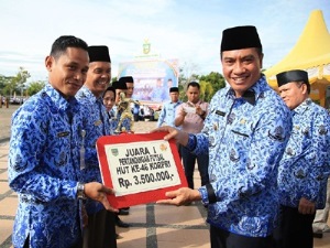 Okeline, Rohul - Bupati Rokan Hulu (Rohul) H. Suparman, S.Sos,M.Si, gelar upacara Hari Ulang -