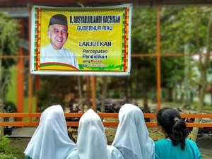 Pekanbaru, Okeline - Ada ditemukan spanduk diduga berbau politik praktis di Sekolah Menengah -