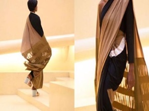 Okeline, Mumbai - India berikan hadiah pakaian sari tradisional dan jaket kurta pada -
